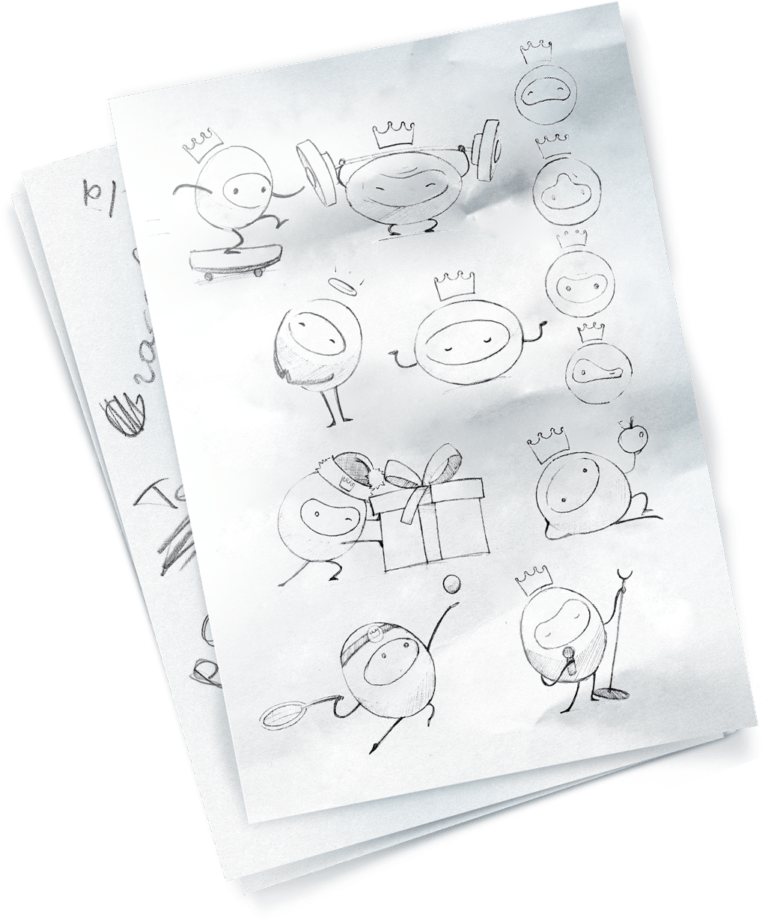 3D-персонаж KOLORO — Колоромбо. Это ожившая буква “О”. Перед началом моделирования наши дизайнеры нарисовали пару десятков эскизов с ним, чтобы отразить разные ситуации с персонажем.